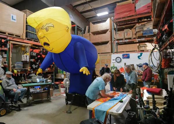 Vashon-Maury Island Beachcomber • 11th March 2026 Backbone readies boldest protest art yet Trump was mostly there — the bulbous blue suit, the exaggerated form, the looming, ridiculous height of him — but the flame meant to shoot from behind, the visual punchline, would not fully inflate.